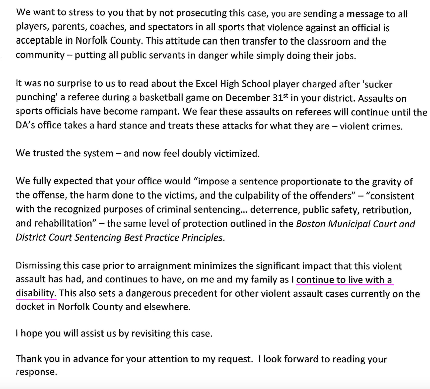 As a result of the Norfolk DA’s Office covering for the son of a well connected State Police Detective Lieutenant and lobbyist attorney, Nicholas Gauvin felt victimized all over again, and apparently is living with a disability from the assault.
